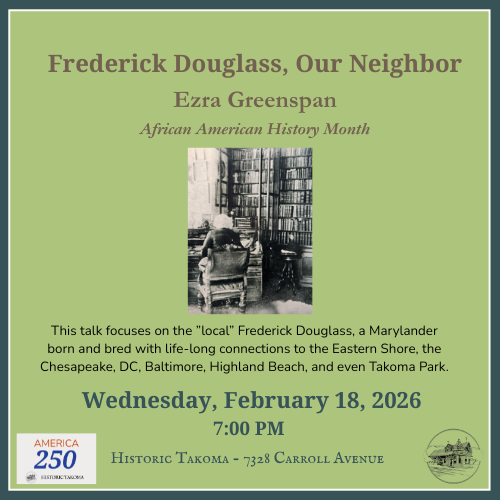 Wednesday, February 18, 2026; 7:00 – 8:30 PM at Historic Takoma, 7328 Carroll Avenue